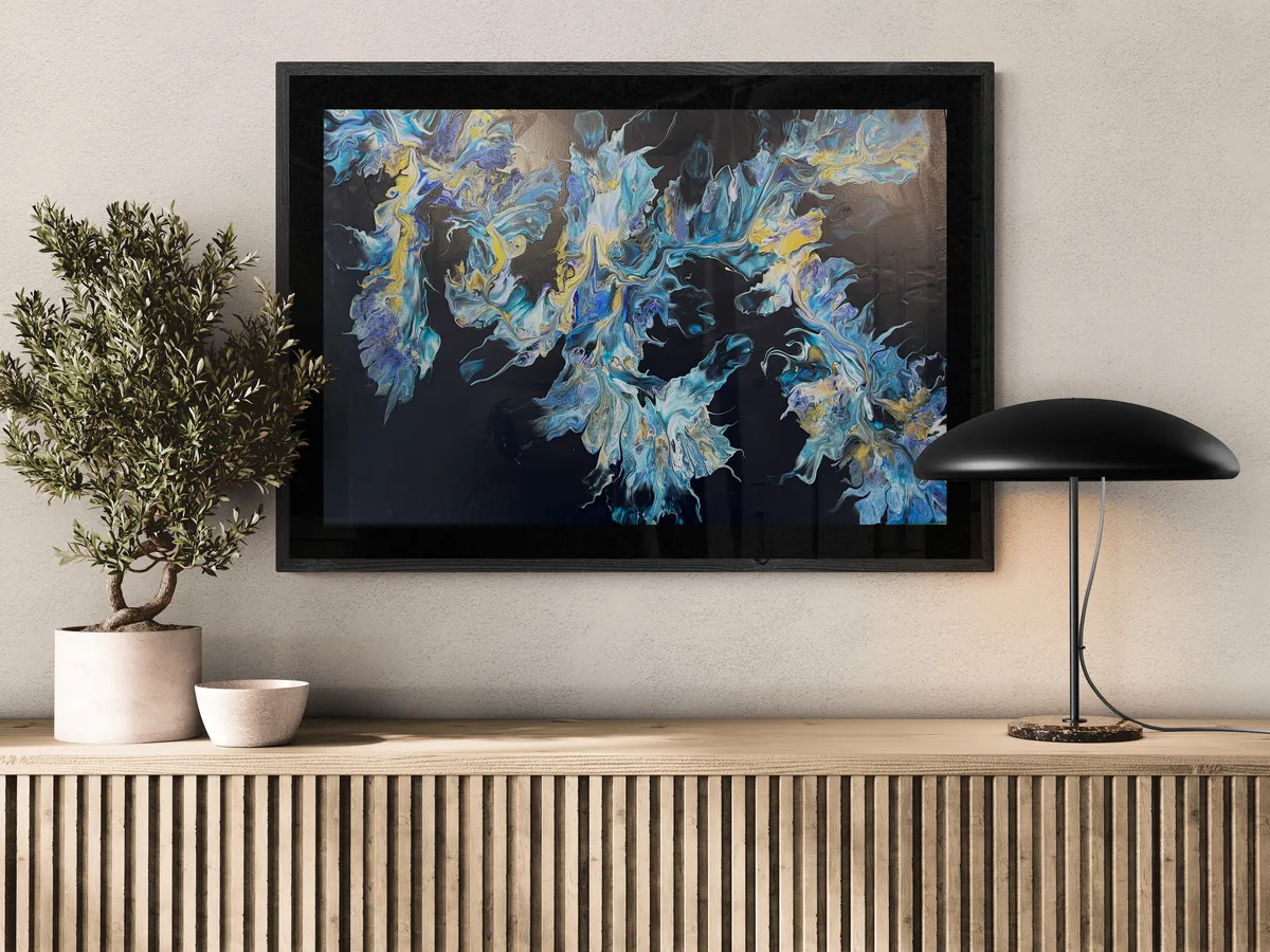 Primary & Pearls OSigned Original Fluid Acrylic painting Gloss Varninshed on 24"w x 30"h Gallery wrapped Canvas